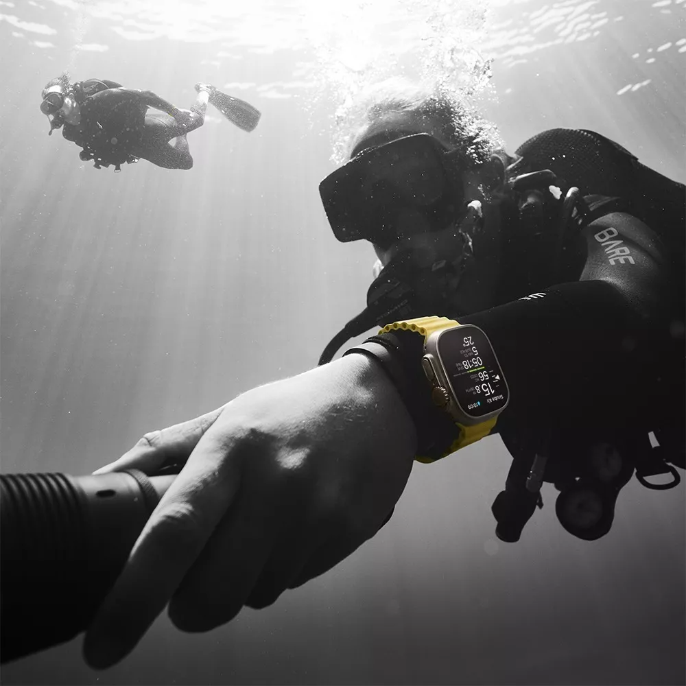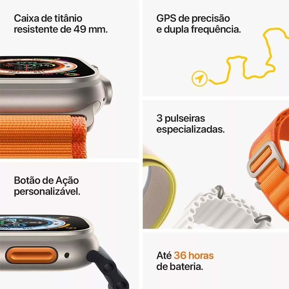 - A maior e mais brilhante tela para Apple Watch para facilitar a leitura sob todas as condições.